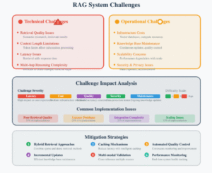 However, successful RAG implementation requires understanding and addressing inherent challenges. Technical challenges like retrieval quality and latency must be balanced against operational concerns including infrastructure costs and knowledge base maintenance. The mitigation strategies we’ve explored – hybrid retrieval approaches, caching mechanisms, and automated quality control – provide proven paths to overcome these obstacles.