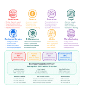 The comprehensive industry analysis shows that RAG technology has achieved remarkable penetration across diverse sectors, with each industry leveraging the technology to address specific challenges while achieving measurable business outcomes.